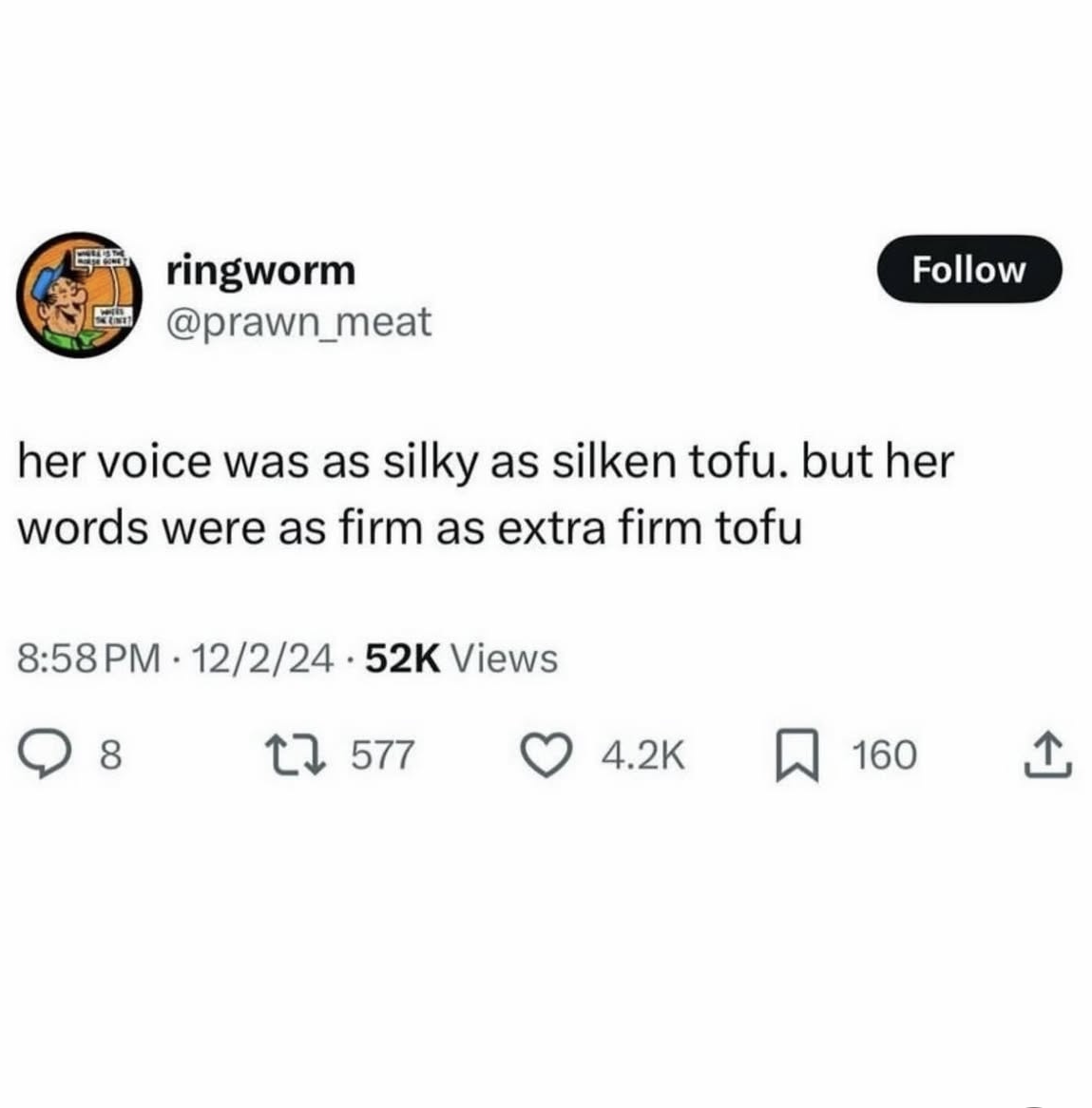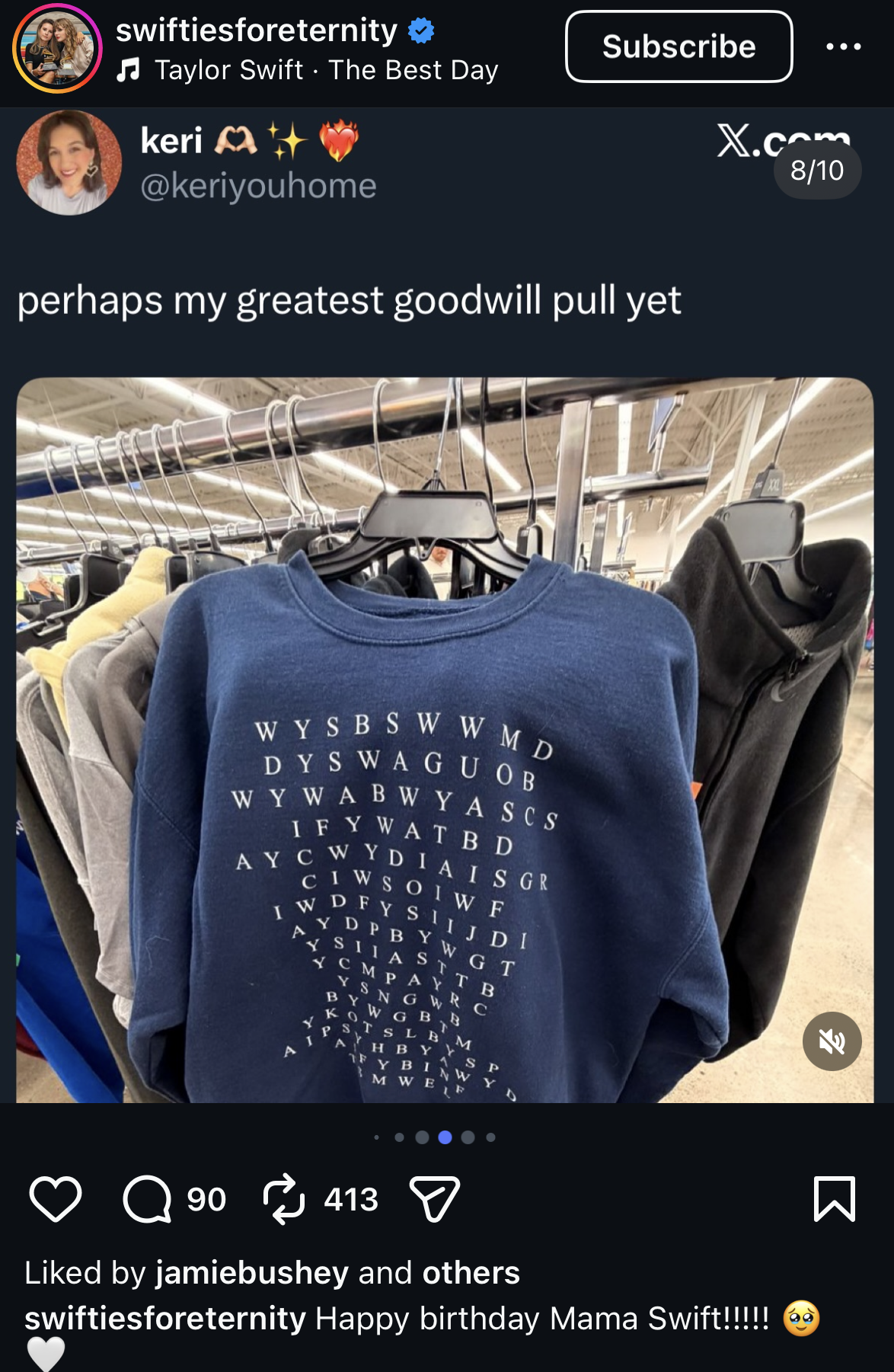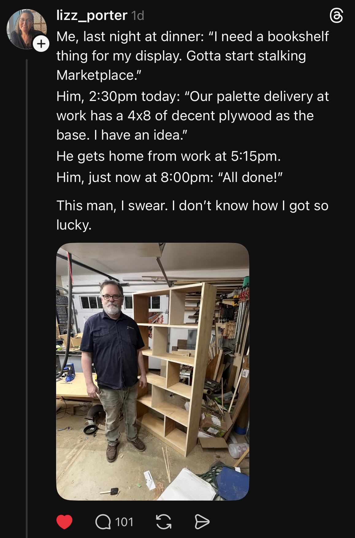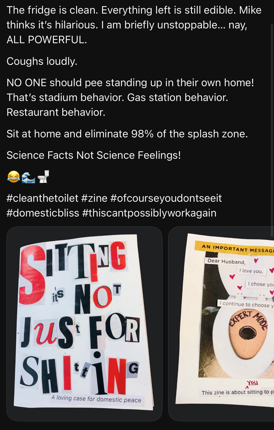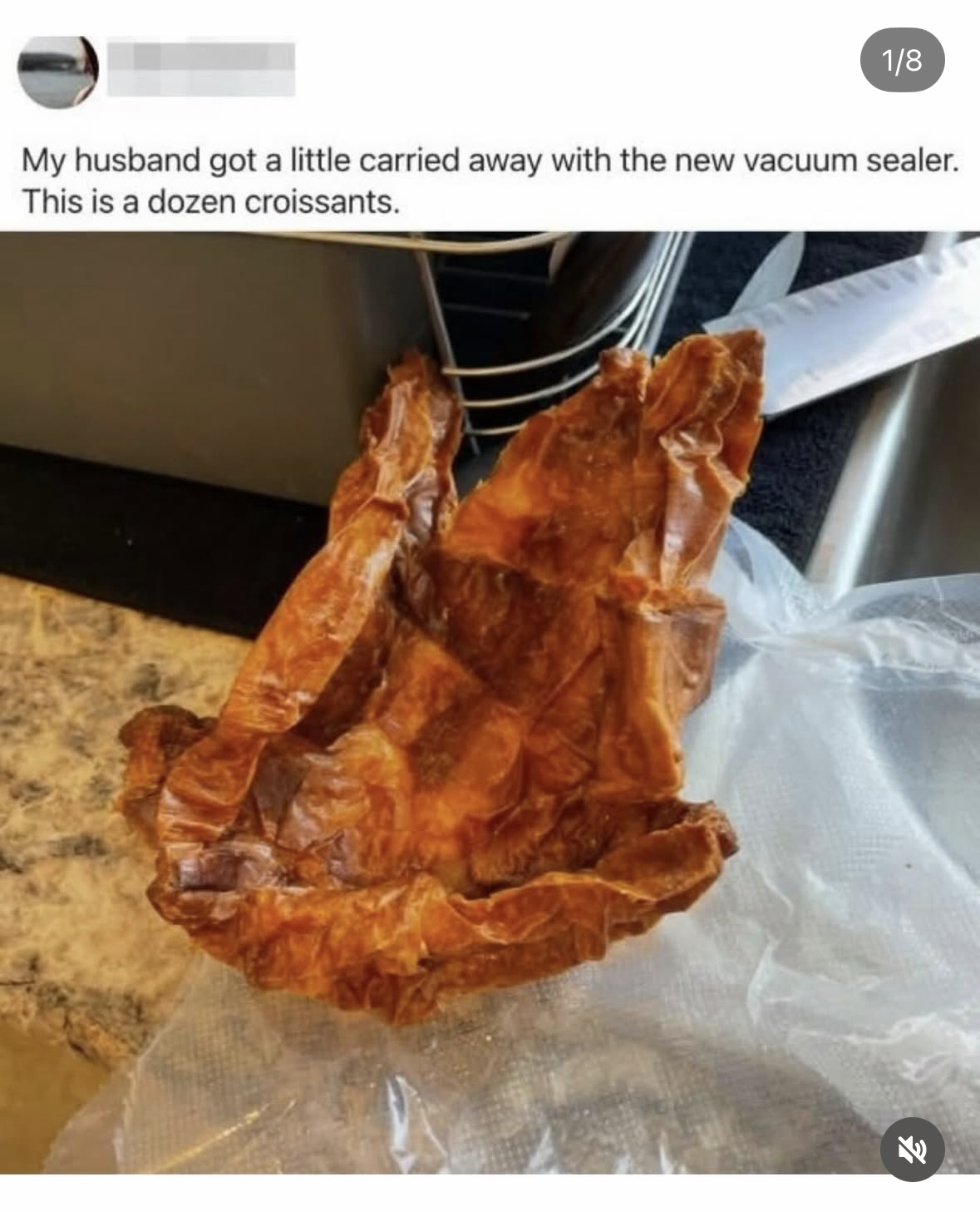 Little internet delights this month: A dozen croissants, vaccuum sealed; a homemade bookshelf; a wife's case for her husband to sit-to-pee, presented as a zine; chess meets tic tac toe; a tofu simile that made me smile; woo house cleaning hacks; a fascinating 9-part thread on synthetic cellulose fibres; a mind-blowing pun revelation; and one for the Swifties.